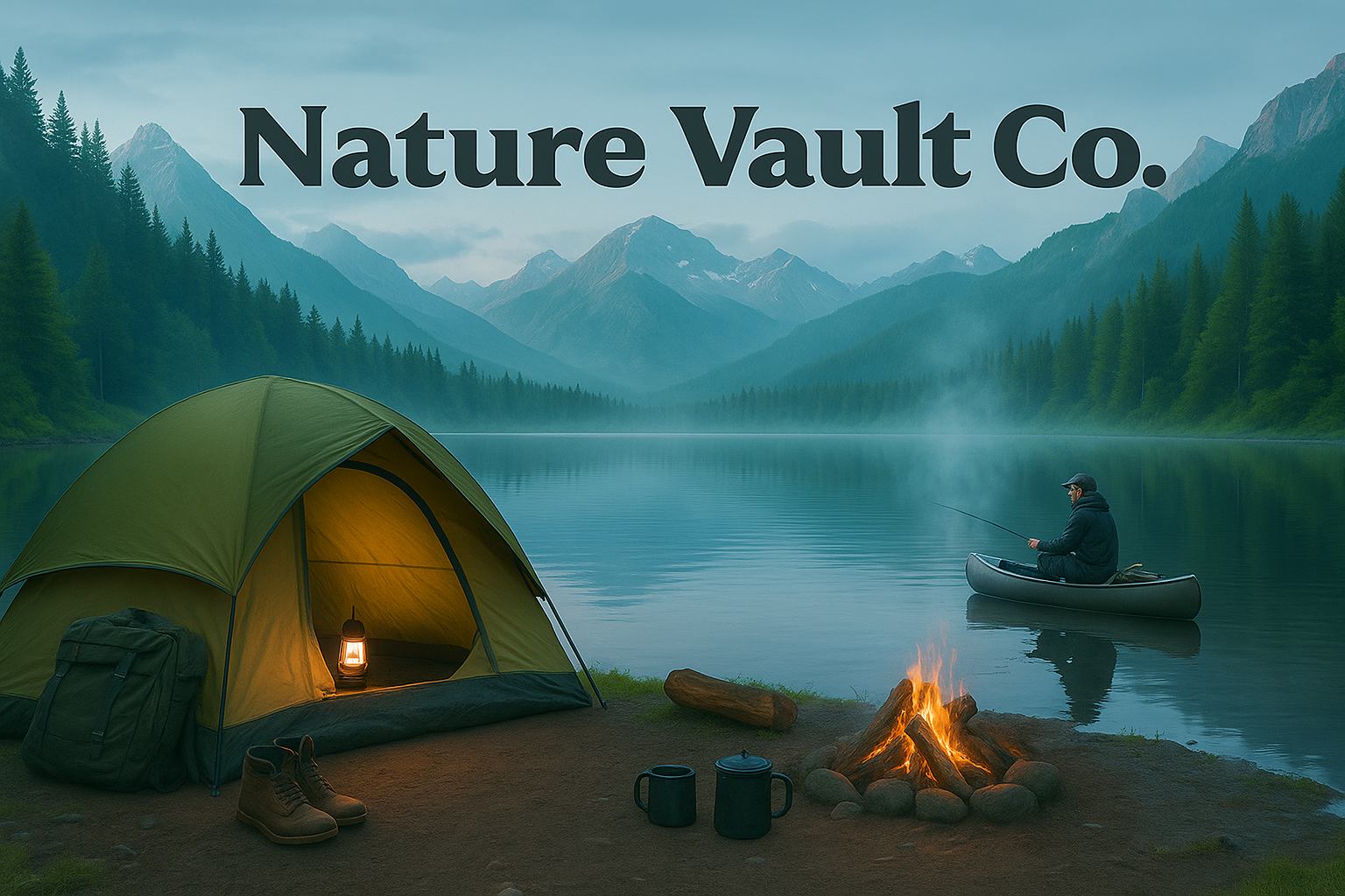Nature Vault Co. offers Tents & Shelters, Fishing Gear, Sleeping Bags, Chairs, Lanterns, Flashlights, Backpacks, Shoes, Sporting Goods, Jackets, and Cookware.